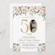 Convite Vermelho Rosa Floral Foto 50º Aniversário