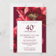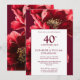 Convite Vermelho Rubi Moderno e Floral Dourado de 40º Aniv
