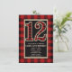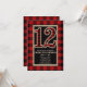 Convites de Aniversário de 12 Anos Plaid Búfalo Vermelho Preto Rústico.