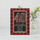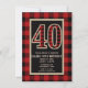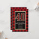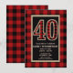 Convites de Aniversário de 40 anos Vermelho Rústico Preto Plaid Búfalo.