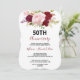 Este convite de aniversário de 50 anos de casamento tropical e romântico na cor vermelha é perfeito para uma festa de aniversário vermelha. O design artístico bordo marsala apresenta rosas em verde, rosa, burgundy e blush em aquarela, misturadas com folhagens, dispostas de forma organizada em um buquê de flores gracioso e radiante.