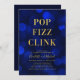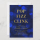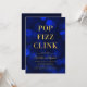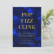 Convite versátil clássico com as palavras "Pop Fizz Clink" em folha de ouro falsa contra um padrão de luzes azul-sapphire que pode ser usado para celebrar noivados, aniversários, etc. O convite tem um fundo azul escuro atrás. Personalize este convite com seus detalhes substituindo o texto do marcador de posição. Para obter mais opções, como alterar a fonte, o tamanho/cor do texto ou o espaçamento entre letras, clique no botão "Personalizar". *Observe que a Marca d'água do Zazzle que aparece na visualização de zoom NÃO aparecerá no produto impresso final. © Rosewood e Citrus