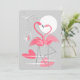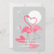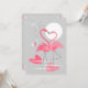 Um par de flamingos cor-de-rosa com pescoços curvados formando um coração ficam no mar numa praia ao luar. Um design elegante e romântico com um toque retrô criado numa paleta de cores rosa, cinza e branco com um fundo que muda de cor. Um design personalizável para você adaptar com seu próprio texto, imagens e ideias. Uma imagem original de arte digital.