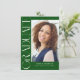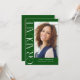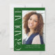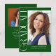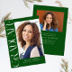 Verde Orçamento Vertical Moderno Dois Convite para Graduação de Fotos apresenta um tipo divertido e moderno, junto com sua foto de formatura. Adicione a sua festa ou abra os detalhes da casa ao fundo.
