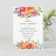 O elegante e rústico design apresenta uma coroa de lindas flores acrílicas pintadas em cor-de-rosa-pincel e amarelo, com pop de folhas e folhagem roxas e verdes coloridas. Placa inversa em uma cinza escura totalmente personalizável. Este convite é perfeito para um casamento elegante rústico, ou celebração de verão ou primavera
