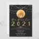 Convide os convidados a telefonar no Ano Novo com estes convites bonito! Eles apresentam um fundo preto damask com luzes de férias piscando e uma grande bola de disco de ouro com o ano "2021".
