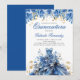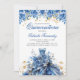 Celebre com esses convites de aniversário de Quinceañera com vestido floral azul e dourado inspirados. Personalize com seu próprio texto e detalhes.