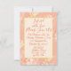 Lindo vestido princesa bailarina gaze grosso cor de pêssego e rosa e perfume com padrão de flor e acentos dourados "Infundido com amor" personalizado. ocasião especial convite. Lindos para Recital de Dança, Aniversário, Quinze Anos, Menina, Pré-adolescente, Formatura, Chá de Bebê ou seu evento especial.