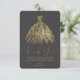 Convite Vestido Botânico Dourado e Cinza Escuro Obrigado