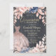Convite Vestido Chic, Flores Azuis, Quinceanera Rosa Doura