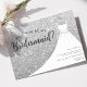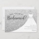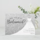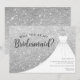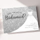 Convite Vestido com Brilho Prateado Você Será Minha Dama de Honra. Este design elegante apresenta brilho falso acentuado com um vestido de noiva branco em um cabide. Personalize este design personalizado com seus próprios detalhes.