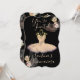 Lindo vestido de bailarina rosa e dourado suave e frasco de perfume com padrão de flores "Infundido com amor" fundo preto personalizado e destaques em rosa pêssego. Personalize para sua ocasião especial. Recital de Dança, Aniversário, Doze Anos, Quinze Anos, Bebê Menina, Pré-adolescente, Chá de Bebê ou seu Evento especial.