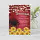 Vestido de borboleta vermelha Girassol A corda de girassol acende design de convite de brilho dourado.