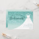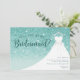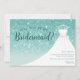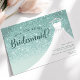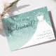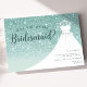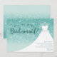 Convite Vestido de Brilho Turquesa Você Será Minha Dama de Honra. Este design elegante apresenta brilho falso acentuado com um vestido de noiva branco em um cabide. Personalize este design personalizado com seus próprios detalhes.