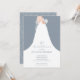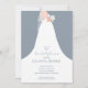 Uma noiva em seu vestido de noiva em um fundo azul empoeirado, esses convites de chá de panela também apresentam um esboço floral de rosa. CORRESPONDENDO a itens na nossa loja.