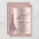 Elegante e sofisticado brilho na borda, e vestido de diamantes rosa dourado em fundo rosa dourado. O design é fácil de personalizar com sua própria palavra e seus convidados ficarão emocionais quando virem esses convites fabulosos.