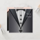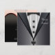 Tuxedo de gravata preta na frente com costas de vestido preto convite para festa e evento formal de gravata preta.