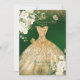 Vestido de quinceanera da PixDezines com glitter em tons de água, dourado, fundo verde esmeralda iridescente (é necessário habilitar o ícone do olho para usar esta imagem, veja os filtros para alterar o tom) e glitter dourado falso. Nós acentuamos com borboletas e rosas de alabastro branco sobre este lindo vestido verde escuro. Todos os elementos são editáveis.