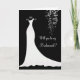 Vestido de noiva branco com lindas flores e borboletas em fundo preto Cartão de pedido de madrinha de casamento. Você pode ajustar o texto de acordo com suas necessidades. Algumas imagens são do design Riefka em www.mygrafico.com