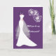Vestido de noiva branco em fundo roxo e flores brancas cartão de saudação de pedido de madrinha. Você pode ajustar o texto de acordo com suas necessidades.