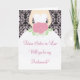 Vestido de noiva branco e flores em um cartão de saudação de pedido de dama de honra de fundo de damasco.. Você pode ajustar o texto de acordo com suas necessidades. Há uma postagem correspondente.