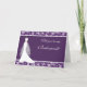Elegante vestido de noiva branco sobre fundo roxo bordeado com padrão de damasco frondoso Pedido de cartão de damas de honra.. Você pode ajustar o texto de acordo com suas necessidades.