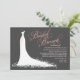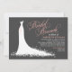 Um convite encantador para o brunch de noiva com um vestido de noiva branco fluído com trabalho de florais delicados e acentos de borboleta em um fundo carvão. A caligrafia bege rosa suave define um tom quente e romântico para a celebração. O título "Brunch de Noiva" é totalmente editável junto com todos os detalhes do evento. O verso apresenta um padrão de borboleta bege rosa coordenado.