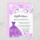 Convite Vestido de Quinceanera, cor-de-rosa, flores roxas