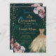 Convite Vestido Dourado de luxo, Ouros, Flores Quinceañera