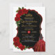 Convite Vestido Elegante Quinceanera Rosas vermelhas Negra