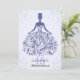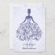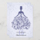 Marinho Glam Moderno Blue Sparkle GIitter Dress Quinceañera Invitation O design apresenta um vestido azul de bola brilhante de marinho cortado a laser com sotaques de configuração de brilho.
