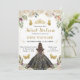 A Elegante aquarela Brunette pairava princesa em design preto com flores brancas e douradas, borboletas e confete dourado.