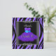 Convite Vestido Preto de Zebra Roxa de Aniversário de 16 A