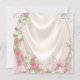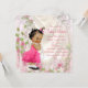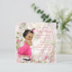 Convite de chá de bebê para menina étnica com adorável bebê vestindo um vestido rosa com folhos e uma linda gargantilha de pérolas com meias brancas e sapatos Mary Jane pretos em um fundo floral de cetim rosa brilhante. Este convite de chá de bebê rosa e marfim é facilmente personalizado para o seu evento, basta adicionar seus detalhes no estilo de letra, cor e texto de sua preferência. Este é um design impresso sem brilho, fitas, etc. reais.
