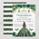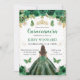 A Elegante morena de aquarela pairava princesa em Hunters Green design com flores verdes e douradas, borboletas e confete dourado.