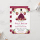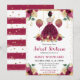 A Elegante aquarela Brunette Hair princesa em Burgundy Red Vestidos design com flores vermelhas e douradas, balões e confete dourado.