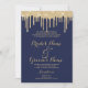 O azul e a brilha dourada do marinho moderno Elegante na moda pingam o convite de casamento. Este luxo de ouro e o convite à festa de casamento azul é perfeito para qualquer evento clássico e sofisticado. Este design é ideal para um evento de tendências e na moda. Personalize este design com sua própria mensagem e informações personalizadas. Todas as designs são impressas.