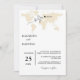 Este convite de casamento tem um mapa de cores de tom bege e uma fonte de script refinada na parte traseira, com os detalhes mais finos na frente. A MAIORIA do texto é facilmente editável para corresponder às suas preferências, e você pode realçar o coração/mudar o local para realçar o seu site de casamento. Este convite é ideal para uma aventura, viagem ou casamento no exterior.