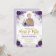 Chá de panela elegante com viagem, com florais de cor-de-água roxas, malas vintage e um globo de lavanda bonito