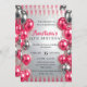 Kick off the celebration with this elegant 15th birthday invitation! The design showcases a chic, glamorous background featuring shimmering silver and soft candy-pink stripes. A vibrant border of metallic pink and silver balloons encircles the edges, scattered with glittering confetti for added sparkle. The celebrant's name stands out in a beautiful flowing pink script, perfectly complementing the clear, modern typography. This customizable card is the perfect sparkling introduction to the party, ideal for a Sweet 15, Quinceañera, or any milestone birthday that calls for high-fashion glamour.
