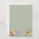 Vibrant wildflower crest wedding invitation with a sage green background and delicate wildflower details on the back.