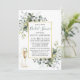 A placa de Chá de panela verde botânico moderno Elegante para aquarelas inclui folhas de eucalipto, folhagem botânica verde, folhas azuis empoeiradas e outro belo verde botânico. Script de caligrafia de tendências. Sage Green Back. Dourado quadro. Vidro de Champanhe de Aquarela com Fita.