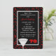 Procurando um convite de aniversário surpresa para um aniversário de 70? Este é o seu! O design apresenta um confete vermelho em preto no fundo. Seus detalhes de convite aparecem em preto com texto branco para tudo, exceto o nome do aniversariante ou da mulher, que está em vermelho. Um copo para torrefação aparece no fundo, assim como um grande 70. Este é um convite divertido e interessante para um 70. Direitos autorais