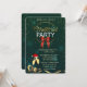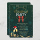 Um convite elegante para festas de férias com óculos de vinho com chapéu de Papai Noel, arco vermelho em fundo verde. Estes belos convites de Natal são perfeitos para convites de festas de janto de Natal, convites para troca de presentes de Natal, angariadores de fundos de Natal, convites para bolas de férias e outros eventos realizados durante o mês de dezembro. Use apenas os campos modelo para adicionar suas próprias informações de evento.