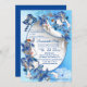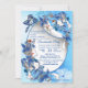 Flores-lua brancas, ilustradas e lúcidas, com pássaros e folhas azul-esverdeadas sobre um fundo azul florado gravado sobre uma imagem criativa e enrolada de papel para personalizar.