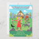 Celebre o aniversário da sua menina viking com este convite colorido! Ela apresenta uma garota viking segurando um arco longo de madeira e uma flecha. Vikings usava arcos e flechas para caçar animais por comida e também em batalha. Esta Viking Girl também tem um animal de estimação de Lobo! Provavelmente, ela está mais envolvida em esportes de arqueiros! Um corvo preto está por perto. Atrás dela, há uma Viking barbuda - talvez o pai dela - e uma casa de madeira com um telhado. É decorado com cabeças de dragão. Este Convite de aniversário Rapariga é facilmente personalizado para o seu evento adicionando os seus detalhes. Ao fundo, há uma paisagem escandinava e uma casa viking. Na frente, há um sinal que lê FESTA, o lobo de estimação e balões amarelos. É ideal para uma festa de aniversário viking-themed!