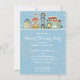 Que neve deixe nevar que neve! Uma cena maravilhosa de inverno de casas de vilarejos brancos, flocos de neve estão caindo do céu azul bonito. Uma marca d'água grande com floco de neve casal adiciona um toque festivo ao fundo. Personalize estes convites para a sua festa de Natal de férias.