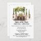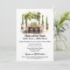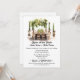 Uma bela ilustração com aquarela apresentando uma mesa formal de jantar ao ar livre em um cenário de jardim. Árvores de poplar e arcos de videiras e armam a mesa que é colocada num pátio de vinhas. O gráfico é definido em um fundo branco estrelado que tem modelos pretos nele para sua redação personalizada. Adicione informações adicionais na parte traseira, se necessário. Esta design é ideal para um tema tucano; casual de um país ao ar livre ou casamento estilo boho. Personalize o texto para garantir que ele atenda às necessidades do dia do casamento.