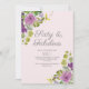 Linda e elegante coloração d'água púrpura floral e vinhas verdes com folhas no 60º aniversário rosa / Sessenta e fabuloso convite de aniversário para mulheres. Texto, fonte, tamanho e cor da fonte são completamente personalizáveis.
