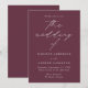 Convite de casamento minimalista e moderno, com detalhes de seu casamento em letras brancas simples com "o casamento de" em um roteiro elegante de caligrafia. O fundo roxo do vinho pode ser mudado para uma cor de sua escolha. Projetado para coordenar com a nossa coleção de casamento do Modern Elegance.